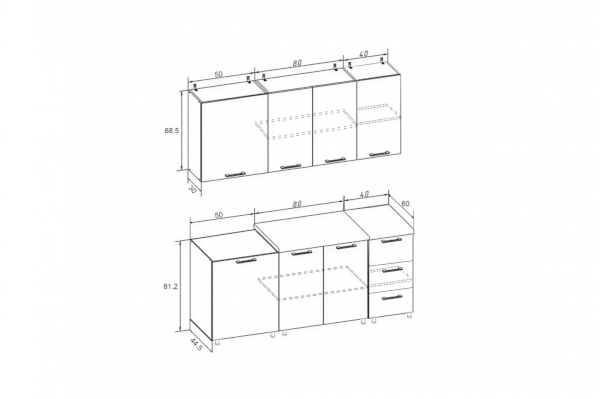 Высота верхних шкафов (мм) | 685 |
