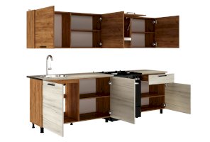 Кухонный гарнитур «Глория» прекрасно подойдет для небольшой кухни. Компактность этой кухни идет рука об руку с ее практичностью, и это не пустые слова. «Глория» спроектирована таким образом, чтобы наиболее рационально использовать ограниченное пространство кухонного помещения.