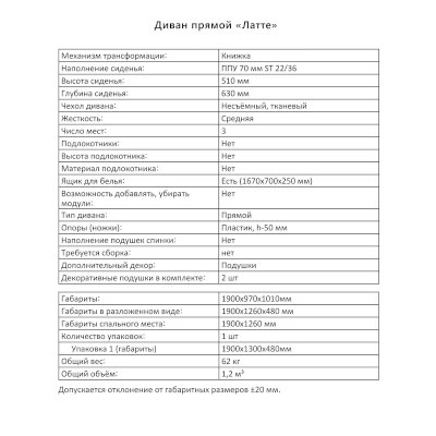 Диван Латте (Аквилон) продается в интернет-магазине mebel-online-kirov.ru по цене 28 547 руб. Есть доставка по Кирову и Кировской области. Возможность подъема на этаж и сборки уточняйте у менеджера по телефону 8(800)505-27-11.