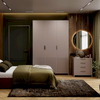 - Стильные ручки в цвете «пыльно-матовое золото».